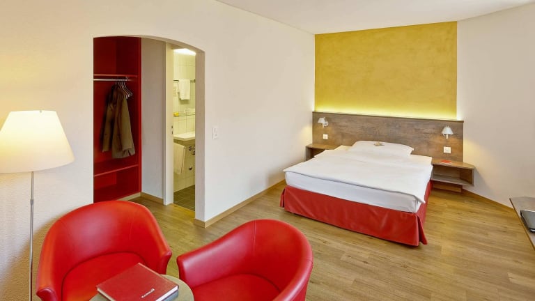 Infrastruktur Fernseher Wireless LAN (Swisscom Hotspot) Direktwahltelefon Safe Wasserkocher Minibar (an Rezeption) Gratis Mineralwasser Haartrockner Dienstleistungen Gratis Internet-Terminal Lobby