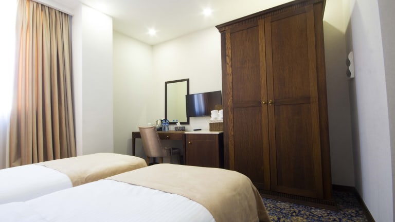 Die Gästezimmer sind ausgestattet mit Klimaanlage, einem Flachbild-TV mit Satellitenkanälen, einem Kühlschrank, einem Wasserkocher, einem Bidet sowie kostenlosen Pflegeprodukten und einem Schreibtisch. Alle Zimmer verfügen über einen Safe. Einige Zimmer bieten zusätzlich einen Balkon und andere einen Blick auf die Stadt. Die Zimmer sind mit Bettwäsche und Handtüchern versehen.