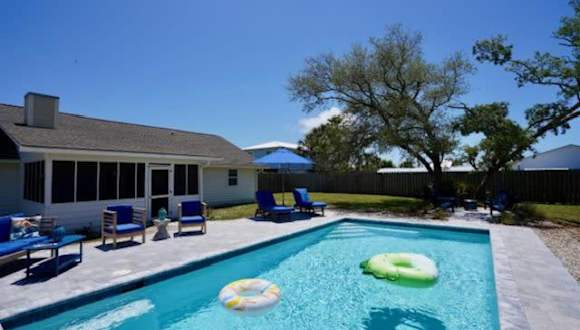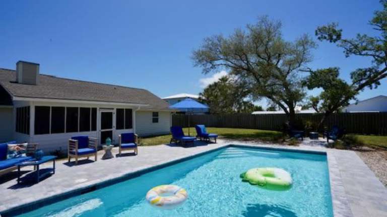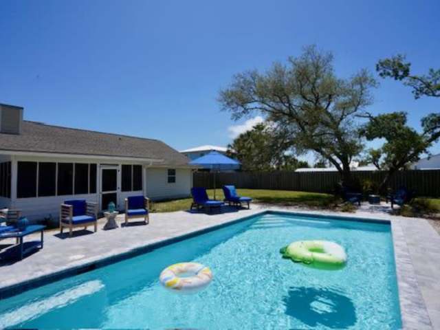 Southern Mermaid Cottage- Pet Friendly Fenced ist ein Ferienhaus, das Übernachtungsmöglichkeiten mit kostenlosem Wifi, Klimaanlage und einem Garten bietet. Das Ferienhaus verfügt über einen eigenen Pool und ist haustierfreundlich.