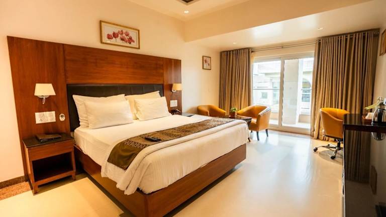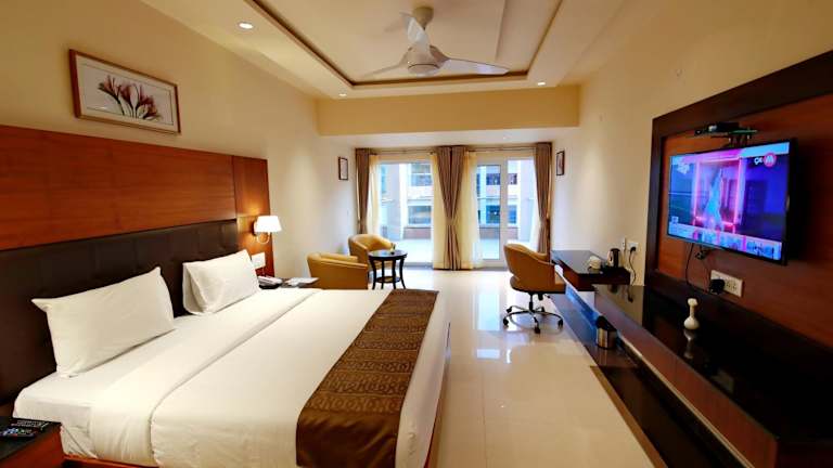Die klimatisierten Zimmer sind mit einem Schreibtisch, einem Wasserkocher, einem Kühlschrank, einer Minibar, einem Safe, einem Flachbild-TV, einem Balkon sowie einem eigenen Badezimmer mit Badewanne oder Dusche ausgestattet. Bettwäsche und Handtücher werden zur Verfügung gestellt.