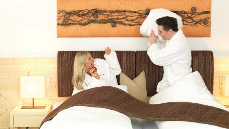 Wohnen im Spa Hotel Zedern Klang ... Ankommen, abschalten und sich verwöhnen lassen ... Das Hotel Zedern Klang besticht durch seine harmonische Symbiose zwischen moderner Architektur und dem traditionellen Baustoff Holz, der hier in einer sehr stilvollen Bauweise verarbeitet wurde. Das Ziel war es, auch im Inneren des Hotels im Einklang mit der Natur zu leben. Die großzügigen Zimmer mit den hohen Fensterfronten fangen die Stimmungen der beruhigenden Umgebung ein und bieten dem Gast ein harmonisches Umfeld um Ruhe und Entspannung zu finden. Bei der Planung und Ausstattung der Zimmer wurde großer Wert auf höchste Qualität und die entspannende Atmosphäre gelegt. Teilweise wurden die Zimmer behindertengerecht eingerichtet.