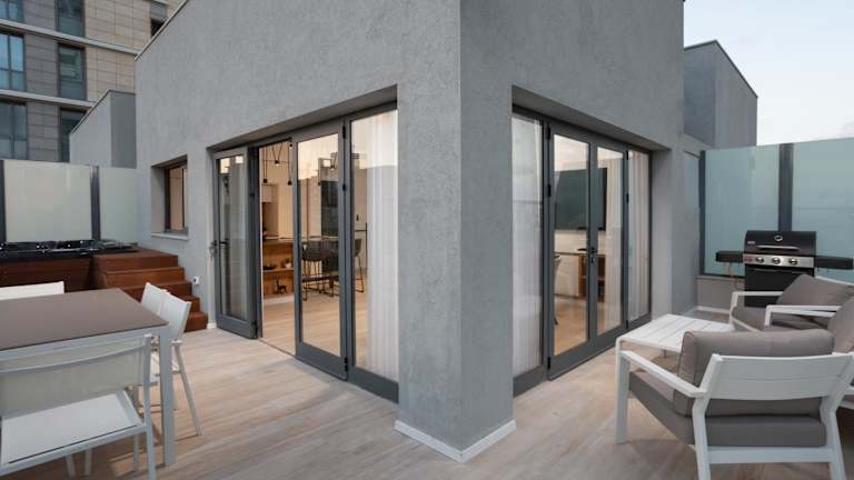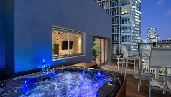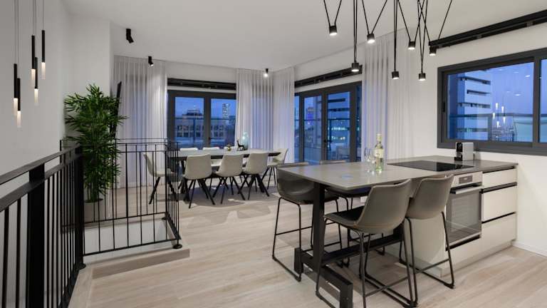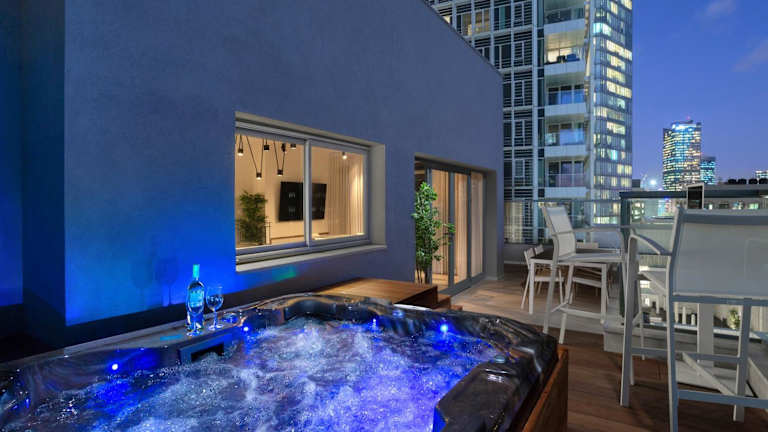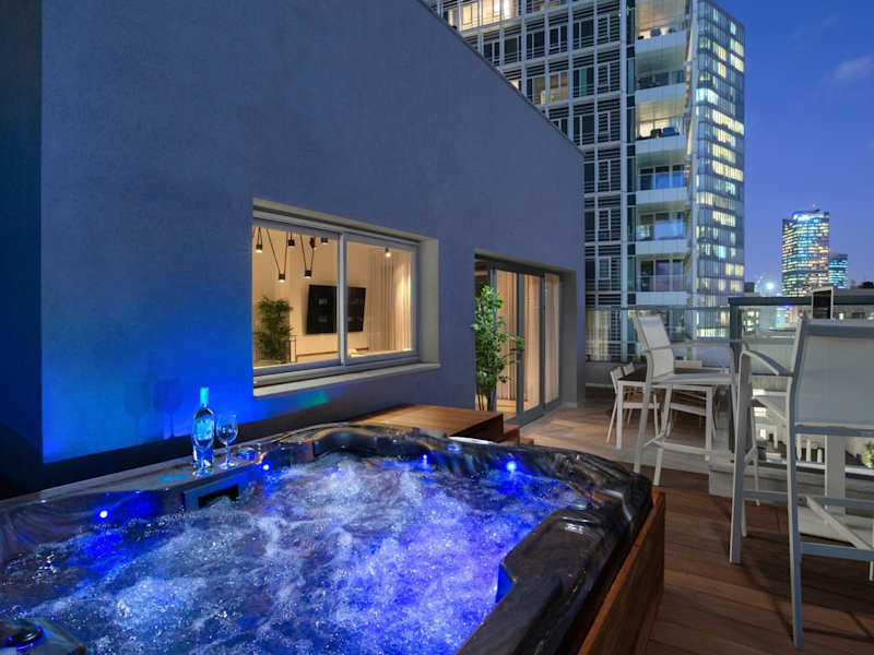 Das Spacious 3BR Penthouse with Jacuzzi on Rosthchild by HolyGuest bietet Stadtblick und eine Terrasse. Diese Ferienwohnung ist klimatisiert und verfügt über eine moderne Ausstattung.