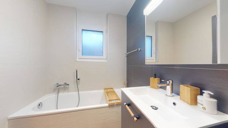 Die Ferienwohnung umfasst zwei Schlafzimmer, ein Wohnzimmer, eine gut ausgestattete Küche und ein Badezimmer mit Dusche und Whirlpool. Zudem sind Handtücher und Bettwäsche vorhanden.