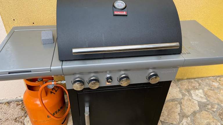 Die Ferienwohnung ist mit einer voll ausgestatteten Küche ausgestattet, die einen Kühlschrank und eine Kaffeemaschine beinhaltet. Die Gäste können Grillmöglichkeiten im Garten nutzen.