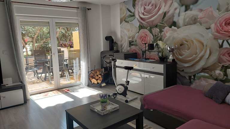 Die Unterkunft bietet ein geräumiges Apartment, das über einen Garten, eine Terrasse und direkten Zugang zum Strand verfügt. Zu den Annehmlichkeiten zählen kostenlose Fahrräder, kostenloses Wifi und ein Garagenplatz. Ein Grill ist ebenfalls verfügbar.