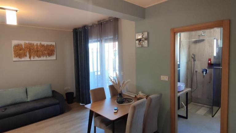 Die Ferienwohnung umfasst ein Schlafzimmer, ein Wohnzimmer und eine voll ausgestattete Küche mit Kühlschrank und Kaffeemaschine. Zwei Badezimmer mit Dusche und kostenlosen Pflegeprodukten sind vorhanden. Handtücher und Bettwäsche werden angeboten. Klimaanlage ist ebenfalls vorhanden.