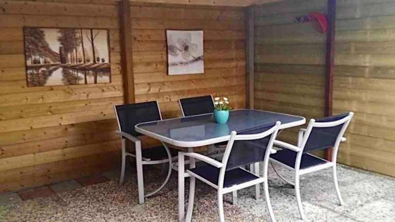 Das Ferienhaus bietet 3 Schlafzimmer, ein Wohnzimmer mit Flachbild-TV und eine Terrasse mit Gartenblick. Die Küche ist mit Kühlschrank und Ofen ausgestattet. Das Badezimmer verfügt über eine Dusche. Handtücher und Bettwäsche werden bereitgestellt.