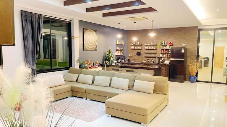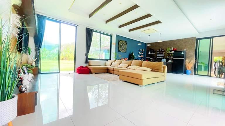 Die Spacious Private Villa Modern Style near beach verfügt über einen Garten, eine Gemeinschaftslounge und eine Terrasse. Kostenfreies WLAN und Bergblick stehen zur Verfügung. Es wird sowohl ein à la carte als auch asiatisches Frühstück angeboten. Die Rezeption ist mehrsprachig und die Mitarbeitenden stehen den Gästen jederzeit zur Verfügung.