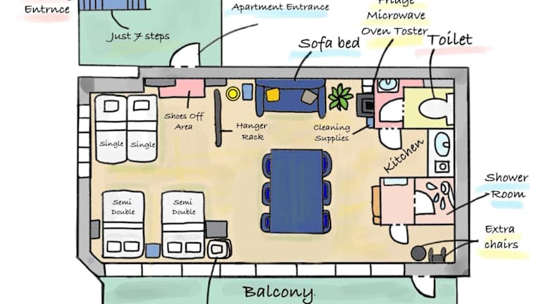 Die Ferienwohnung besteht aus 1 separaten Schlafzimmer und einer voll ausgestatteten Küche mit Kühlschrank und Mikrowelle. Handtücher und Bettwäsche werden zur Verfügung gestellt.