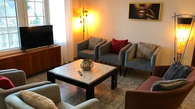 Die Villa beinhaltet 8 gut ausgestattete Schlafzimmer, einen Fernseher sowie eine voll ausgestattete Küche mit Kühlschrank, Geschirrspüler, Waschmaschine, Ofen und Mikrowelle. Ein Balkon ermöglicht einen schönen Ausblick und allen Gästen steht kostenloses Wifi zur Verfügung.