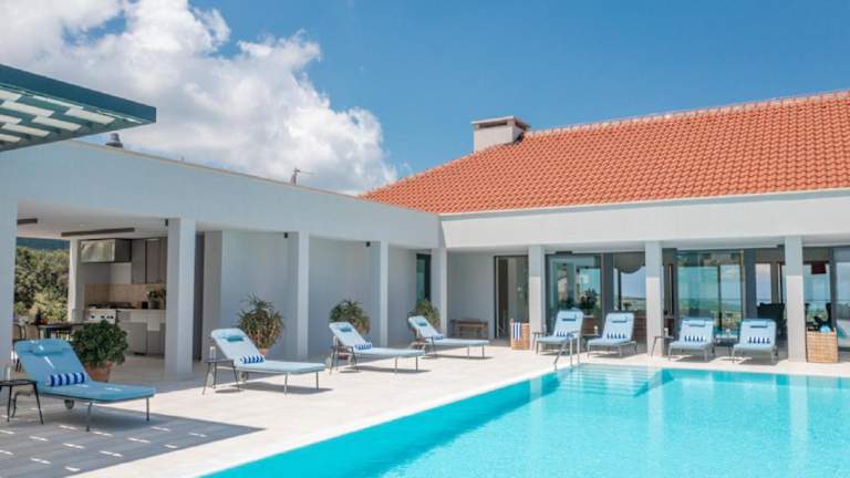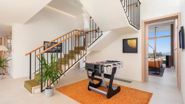 Die Villa umfasst 5 Schlafzimmer und 5 Badezimmer, ausgestattet mit Bettwäsche und Handtüchern. Zusätzlich gibt es einen Essbereich, einen TV und eine voll ausgestattete Küche. Die Terrasse bietet einen direkten Blick auf das Meer.