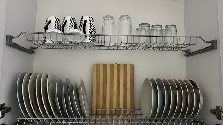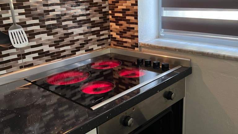 Die Ferienwohnung verfügt über eine komplett ausgestattete Küche mit Kühlschrank, Mikrowelle und Herdplatte, die die Zubereitung von eigenen Mahlzeiten ermöglicht. Essbereich und Sitzbereich laden zum Verweilen ein.