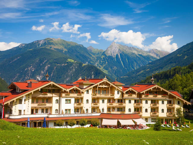Das Hotel liegt zentral und ruhig in leichter Hanglage ca. 2 km von Mayrhofen - Richtung Hintertuxer Gletscher, nur 150 m von der Talstation Finkenberger Almbahn (Einstieg in die Ski und Gletscherwelt Zillertal 3000), 15 km vom Hintertuxer Gletscher, in unmittelbarer Nähe von Einkaufmöglichkeiten und einer Bushaltestelle vom dem Hotel.