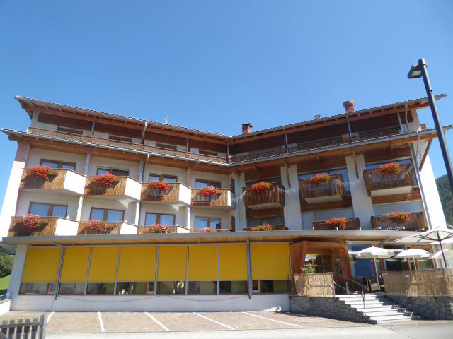 Das Hotel bietet ein süsses und herzhaftes Frühstücksbuffet, das frisch zubereitete Eier, Obst, hausgemachte Marmeladen und Kuchen umfasst. Bei schönem Wetter ist es möglich, das Frühstück im Freien zu geniessen. Das Restaurant mit Terrasse serviert am Abend südtiroler und mediterrane Küche, wobei gluten- und laktosefreie Optionen auf Anfrage erhältlich sind.