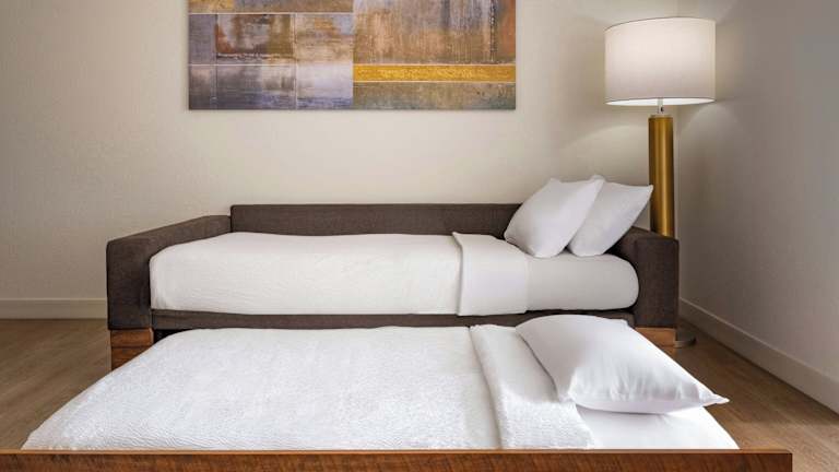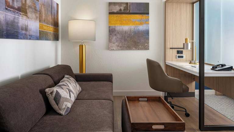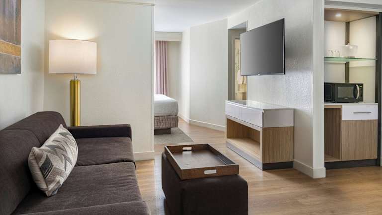 Die Zimmer sind ausgestattet mit Klimaanlage, Heizung, einem Doppelbett und einem Sofabett, sowie einer Kochnische mit Kühlschrank und Mikrowelle. Weitere Annehmlichkeiten umfassen ein Badezimmer mit Dusche und Whirlwanne, einen Haartrockner, einen Safe, eine Minibar und einen Schreibtisch. Kostenfreies Wifi und Sat-TV sind ebenfalls vorhanden.