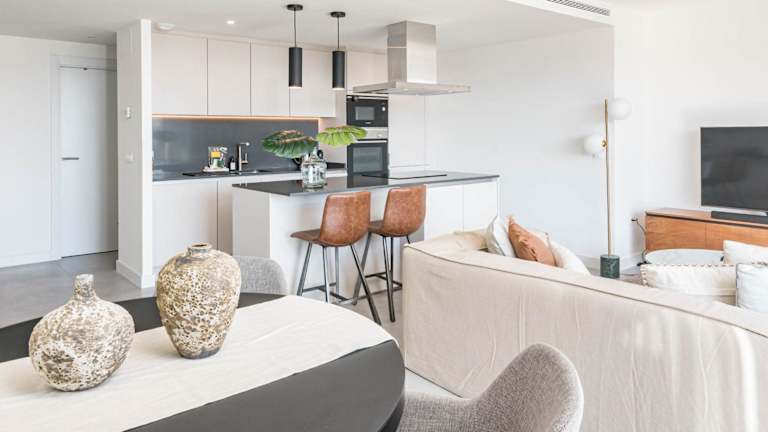 Die Ferienwohnung umfasst insgesamt 3 Schlafzimmer sowie eine voll ausgestattete Küche mit Kühlschrank und Geschirrspüler. Es sind 2 Badezimmer mit Dusche und kostenlosen Pflegeprodukten vorhanden. Handtücher und Bettwäsche werden bereitgestellt, um den Gästen eine angenehme Unterbringung zu gewährleisten.