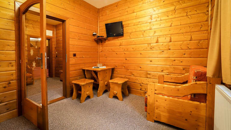 Die Zimmer in der Unterkunft Srub Karolina sind ausgestattet mit einem Kleiderschrank, einem Flachbild-TV, einem eigenen Badezimmer, Bettwäsche und Handtüchern. Jedes Zimmer verfügt zudem über einen Sitzbereich.