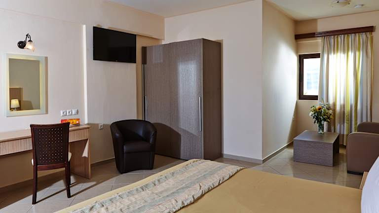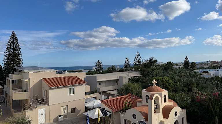 Das Hotel St. Constantin liegt in Gouves und bietet eine ideale Lage, nur 20 m vom Strand entfernt. Der Strand ist mit feinem Sand ausgestattet und bietet Liegestühle und Sonnenschirme gegen Gebühr. Das Stadtzentrum von Gouves ist ca. 800 m entfernt und bietet eine Vielzahl von Einkaufs- und Unterhaltungsmöglichkeiten.