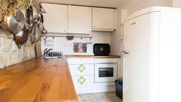 Die Ferienwohnung bietet eine gemütliche Ausstattung mit einem Schlafzimmer und einem Wohnzimmer. Die Unterkunft hat einen Flachbild-TV und eine gut ausgestattete Küche, die mit einem Kühlschrank und einem Geschirrspüler ausgestattet ist. Ein Badezimmer mit Dusche ist ebenfalls vorhanden. Handtücher und Bettwäsche werden bereitgestellt.