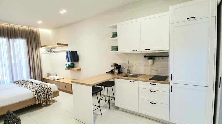 Die Apartments sind mit einem Sitzbereich, einem Satelliten-Flachbild-TV sowie einer voll ausgestatteten Küche mit Kühlschrank, Herdplatte, Toaster und Wasserkocher ausgestattet. Ein eigenes Badezimmer mit Dusche und kostenlosen Pflegeprodukten ist ebenfalls vorhanden. Die Zimmer bieten außerdem schallisolierte Wände und eine tägliche Reinigung.