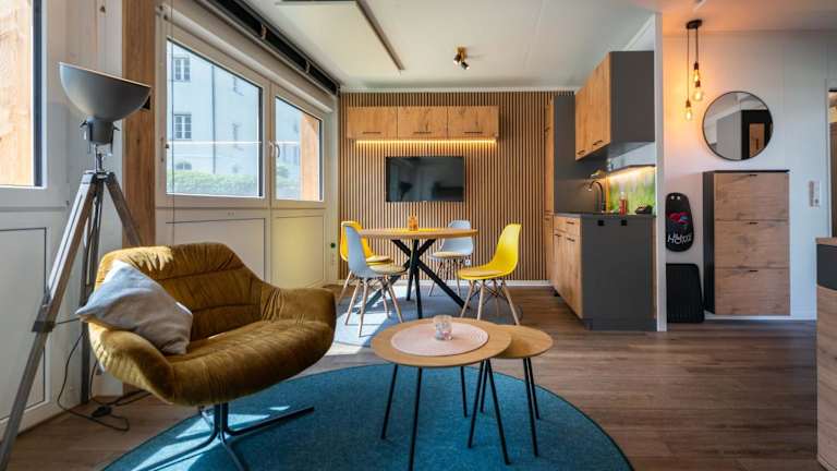 Die Zimmer im Stadel Chalet Kunterbunt sind mit einem Sitzbereich, einem Kabel Flachbild-TV sowie einer voll ausgestatteten Küchenzeile mit Kühlschrank und Geschirrspüler ausgestattet. Jedes Zimmer verfügt über ein eigenes Badezimmer mit Dusche und Haartrockner.