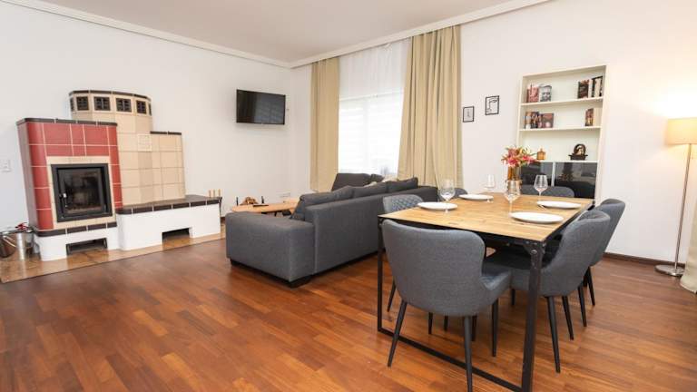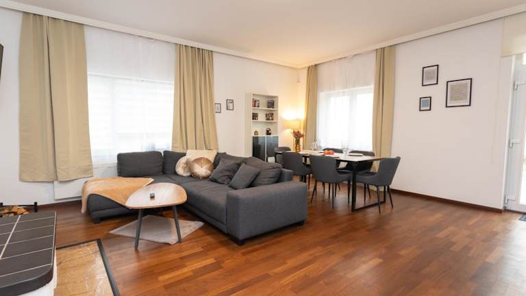 Das Stadthaus bietet Übernachtungsmöglichkeiten mit zwei Schlafzimmern und einem Wohnzimmer mit Kamin. Es ist eine Nichtraucherunterkunft und hat einen Garten sowie eine einladende Terrasse mit Gartenblick. Ein kostenloser Privatparkplatz steht auf dem Grundstück zur Verfügung.
