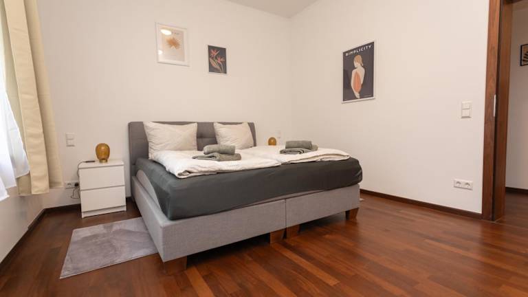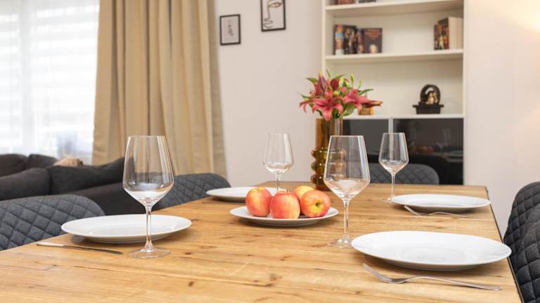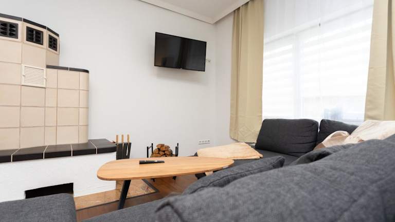 Das Ferienhaus enthält zwei Schlafzimmer, ein Wohnzimmer mit Flachbild-TV, eine gut ausgestattete Küche mit Kühlschrank und Geschirrspüler sowie ein Badezimmer mit Dusche. Handtücher und Bettwäsche werden bereitgestellt.