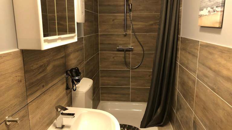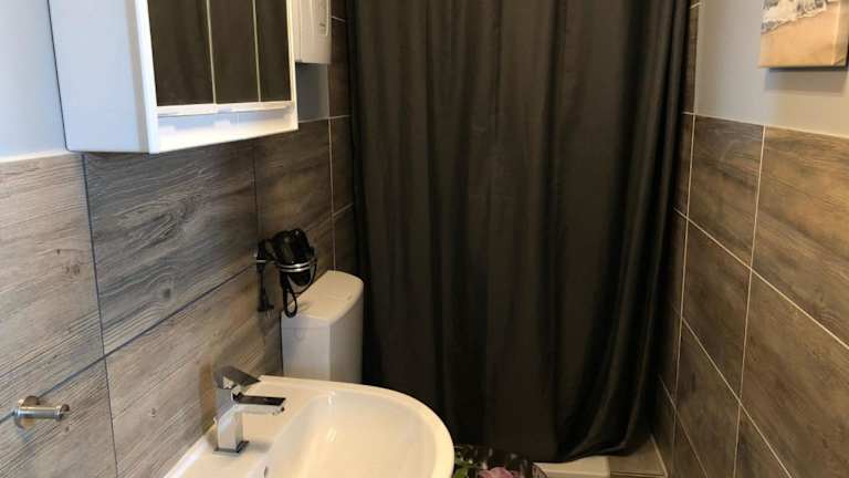 Die Ferienwohnung ist ausgestattet mit einem Schlafzimmer, einer Küche, einem Badezimmer mit Dusche, Haartrockner und Waschmaschine. Handtücher und Bettwäsche werden gestellt, und die Unterkunft ist Nichtraucher. Ein Waschsalon sowie Friseur- und Schönheitssalon sind ebenfalls vorhanden.