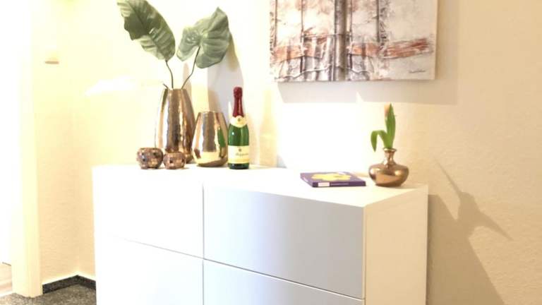 Die Ferienwohnung ist ausgestattet mit 2 Schlafzimmern, einem TV sowie einer voll ausgestatteten Küche. Diese bietet den Gästen einen Kühlschrank, Geschirrspüler, Waschmaschine, Ofen und Mikrowelle. Handtücher und Bettwäsche werden bereitgestellt. Es sind allergikerfreundliche Zimmer verfügbar.