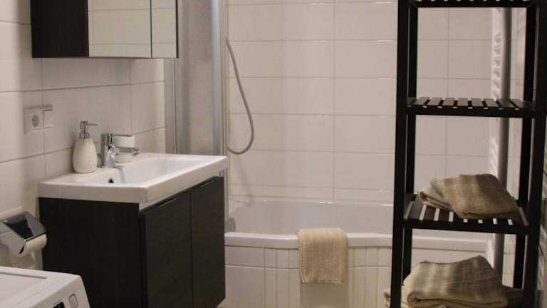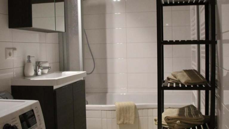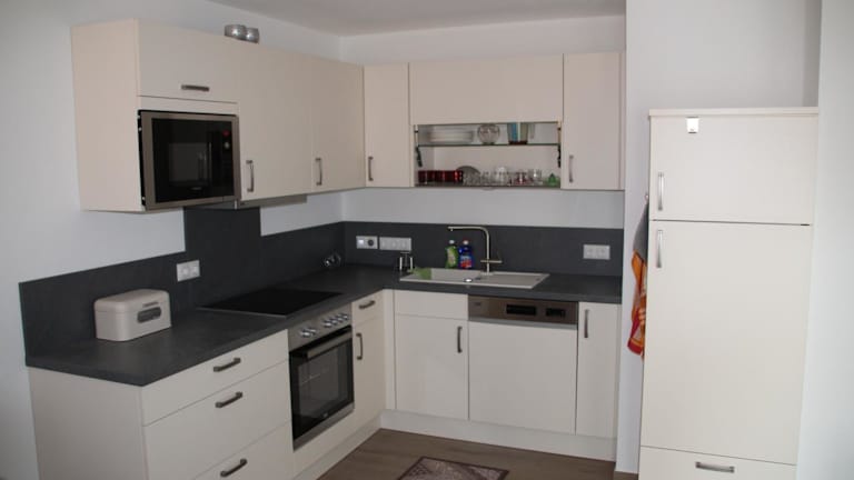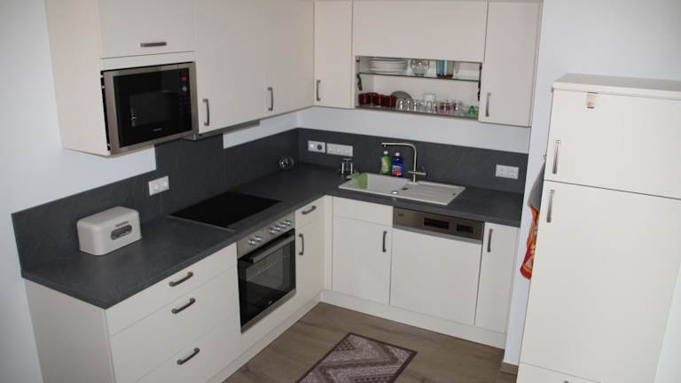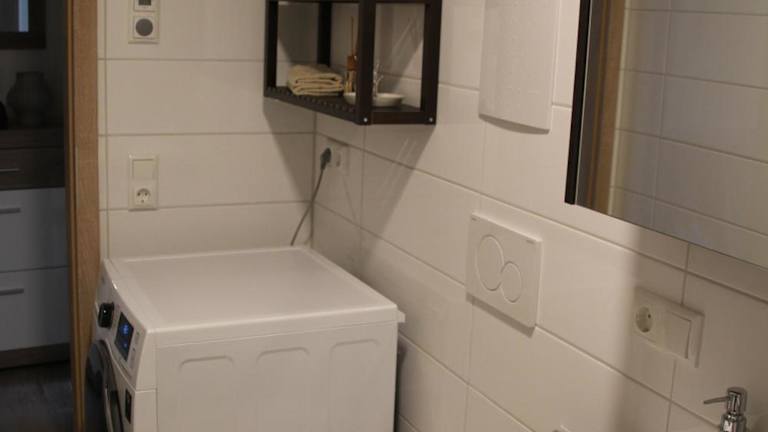 Die Ferienwohnung ist mit einer modernen Küche ausgestattet, die einen Kühlschrank, einen Geschirrspüler und einen Ofen umfasst. Das Wohnzimmer verfügt über einen Sitzbereich und einen Essbereich, während es ein Schlafzimmer und ein Badezimmer mit Dusche und Badewanne gibt. Handtücher und Bettwäsche werden zur Verfügung gestellt.