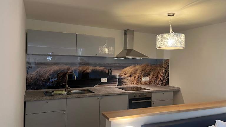 In der Unterkunft gibt es eine voll ausgestattete Küchenzeile mit Kühlschrank und Ofen. Zudem besteht die Möglichkeit, Essenslieferungen in die Unterkunft zu bestellen.