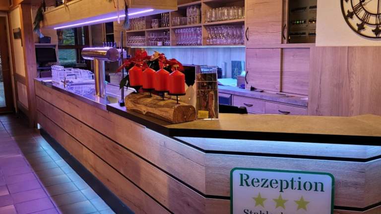 Ein abwechslungsreiches Frühstücksbuffet wird in der Unterkunft Stahlecker Hof angeboten. Es stehen auch spezielle Speisen für Gäste mit besonderen Ernährungsbedürfnissen zur Verfügung. Das Restaurant vor Ort sorgt dafür, dass auch während des Aufenthalts für das leibliche Wohl gesorgt ist.