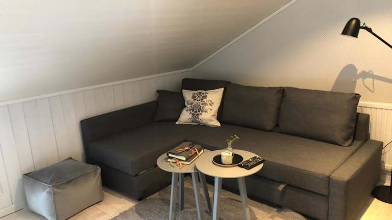Stallet - Hemma hos Mait ist ein heimeliges Ferienhaus, das Übernachtungsmöglichkeiten mit Gartenblick bietet. Die Unterkunft ist von einem Garten umgeben und verfügt über kostenlose Fahrräder, eine Terrasse mit Bergblick sowie eine gut ausgestattete Küche. Gratis Privatparkplätze sind ebenfalls vorhanden. Das Ferienhaus wird von einem privaten Gastgeber geführt und bietet eine Nichtraucherumgebung.