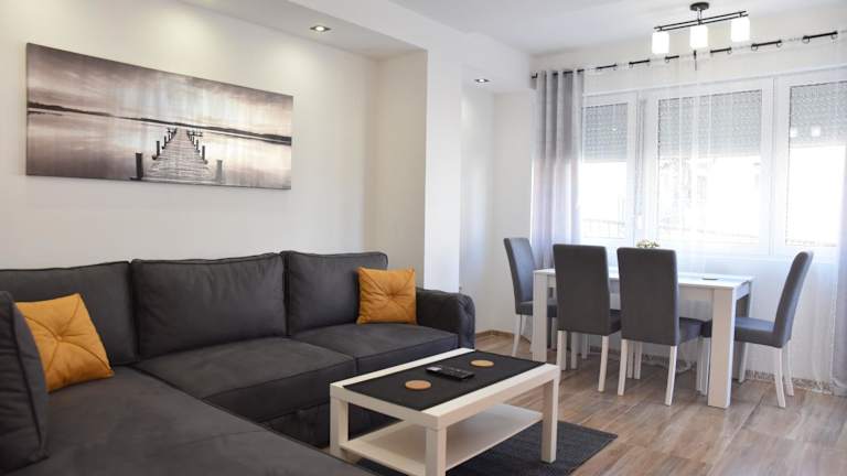 Die Ferienwohnung besteht aus 1 Schlafzimmer, einem Wohnzimmer, einer voll ausgestatteten Küche mit einem Kühlschrank sowie 1 Badezimmer mit einer Dusche und einem Haartrockner. In der Unterkunft sind Handtücher und Bettwäsche verfügbar. Schallisolierte Zimmer sorgen für eine heimelige Atmosphäre und Klimaanlage ist ebenfalls vorhanden. Die Unterkunft ist eine Nichtraucherunterkunft.