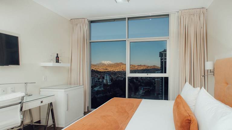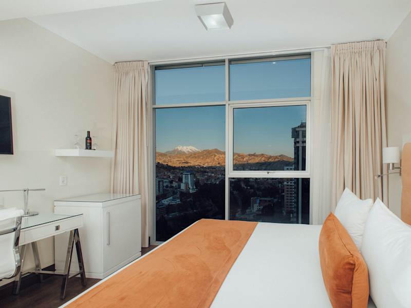 Das Hotel liegt etwa 1 km vom Zentrum von La Paz entfernt. Die Seilbahnstation an den Linien Himmelblau und Weiss ist bequem zu Fuss erreichbar und verbindet die Gäste mit verschiedenen Teilen der Stadt.