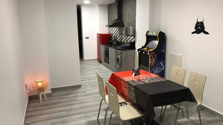 Die Ferienwohnung besteht aus einem Schlafzimmer, einem Wohnzimmer und einer voll ausgestatteten Küche mit einem Ofen und einer Kaffeemaschine. Das Badezimmer ist mit einer Dusche und einem Haartrockner ausgestattet. Zu den Annehmlichkeiten gehören ein Flachbild-TV und eine Spielekonsole. Die Unterkunft ist klimatisiert und eignet sich ideal für Familien.