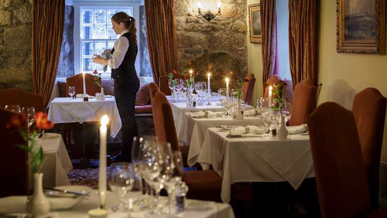 Im Restaurant wird ein Frühstücksbuffet angeboten, zusätzlich kann ein warmes Frühstück à la carte gewählt werden. Das abendliche Menü legt den Fokus auf frischen Fisch aus der Region und es werden mehrgängige Dinner angeboten. Die Bar im Souterrain bietet Scillonian Real Ale sowie eine Auswahl an Weinen und Spirituosen.