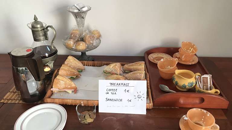 Die Zimmer sind unterschiedlich ausgestattet, einige verfügen über einen Balkon mit Meerblick, während andere Stadtblick bieten. Alle Zimmer haben Zugang zu einem Gemeinschaftsbad, und es sind ausgewählte Zimmer mit einer Terrasse verfügbar.