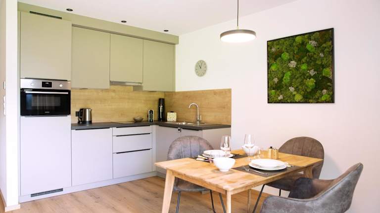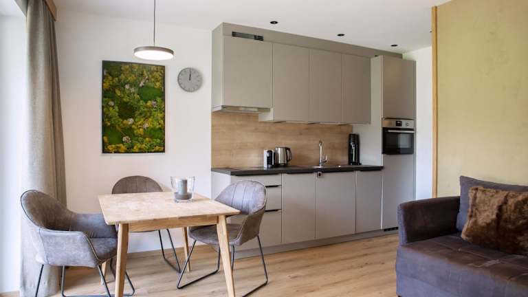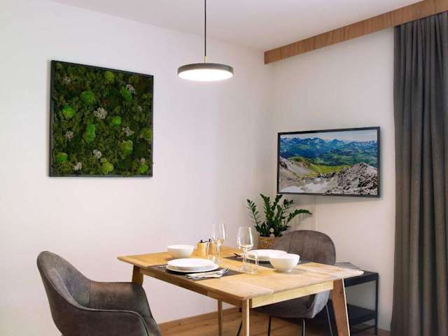 Die Ferienwohnung verfügt über ein Schlafzimmer und ein Badezimmer. Zur Ausstattung gehören Bettwäsche, Handtücher, ein Flachbild-TV sowie eine voll ausgestattete Küche. Die Terrasse ermöglicht den Genuss der schönen Bergsicht.
