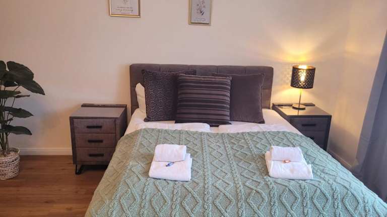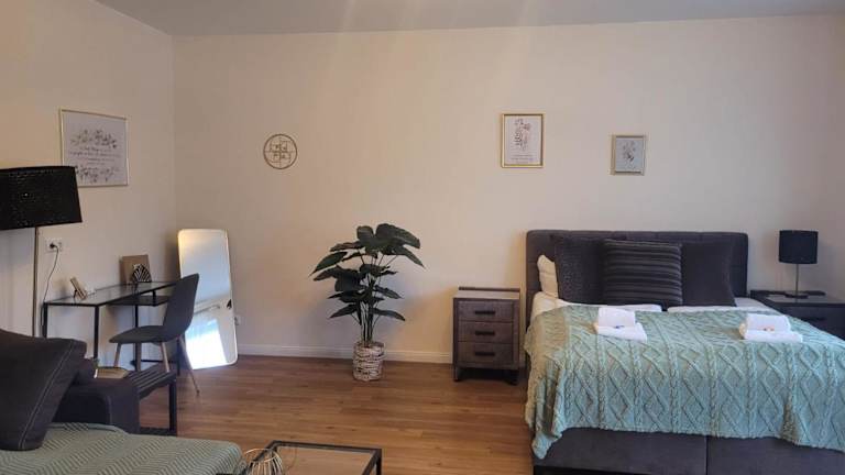 Das Apartment umfasst 1 Schlafzimmer und eine moderne Küche, die mit einem Kühlschrank und einem Ofen ausgestattet ist. Es verfügt zudem über 1 Badezimmer mit Dusche sowie kostenlosen Pflegeprodukten und einer Waschmaschine. Handtücher und Bettwäsche werden bereitgestellt.
