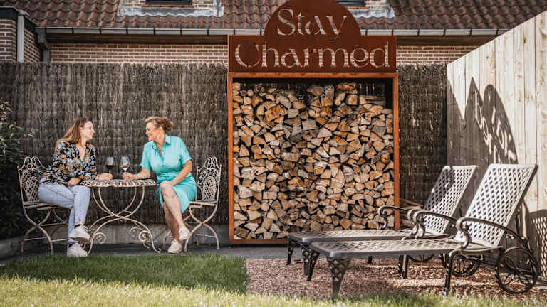 Stay Charmed bietet einen Garten mit einem Kinderspielplatz sowie Zugang zu einer Sauna und einem Whirlpool. Die Unterkunft hat eine Terrasse mit Gartenblick und einen Sitzbereich.