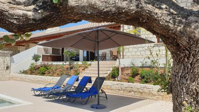 Die Villa bietet Platz für Gäste in zwei Schlafzimmern, einem Wohnzimmer und einer voll ausgestatteten Küche. Zu den Ausstattungselementen gehören ein Kühlschrank und ein Wasserkocher sowie zwei Badezimmer mit Dusche und kostenlosen Pflegeprodukten. Handtücher und Bettwäsche werden bereitgestellt. Die Unterkunft ist klimatisiert und bietet zudem einen Zugang zur Terrasse.