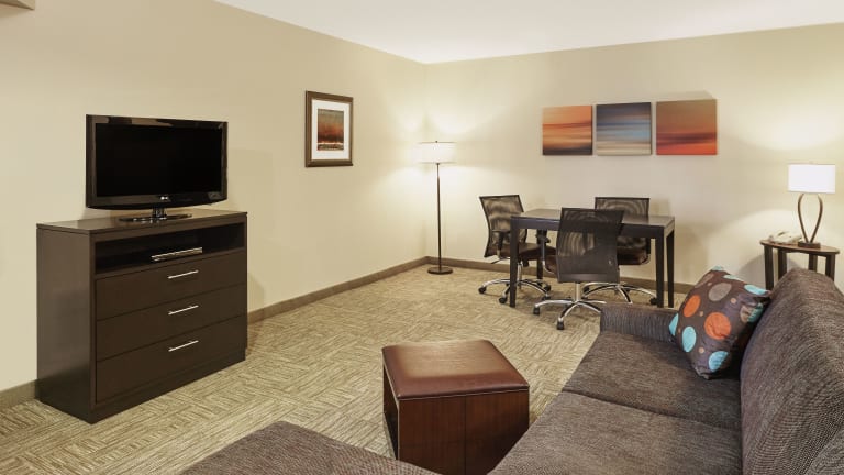 Das Staybridge Suites Chicago - Glenview bietet 120 Zimmer und ist mit einem Aufzug, einem Kamin und einem schönen Garten ausgestattet. Zu den weiteren Einrichtungen gehören eine Wäscherei, ein Minimarkt, ein TV-Raum und eine Bibliothek. Das Hotel verfügt über einen 24 Stunden geöffneten Sicherheitsdienst und einen Transferservice. Es gibt Parkiermöglichkeiten in einer Garage (gegen Gebühr) oder auf dem Gelände (ohne Gebühr).