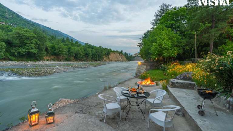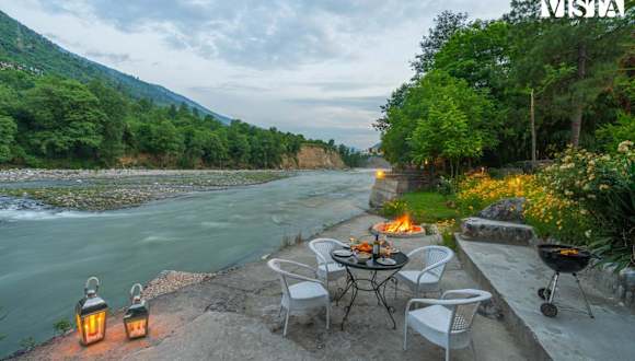 Die Unterkunft StayVista at Moets Waterfront Estate befindet sich in Raogi, in der Nähe von Kullu in Himachal Pradesh, eingebettet in eine malerische Umgebung mit Garten und Flussblick. Sie liegt in der Nähe wichtiger Sehenswürdigkeiten wie dem Hidimba Devi-Tempel und dem Himalayan Nyinmapa Tibetan Buddhist Monastery.
