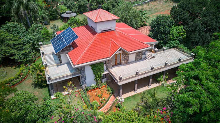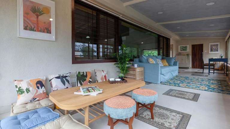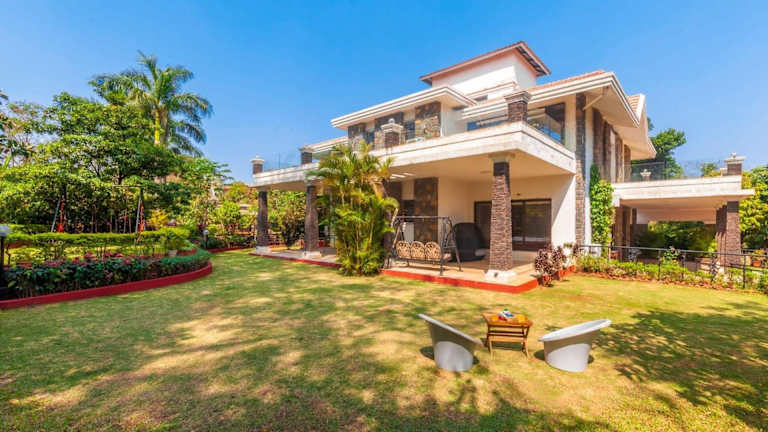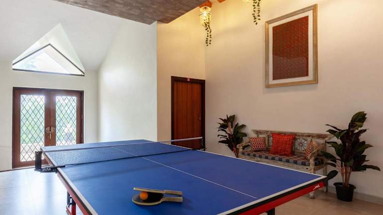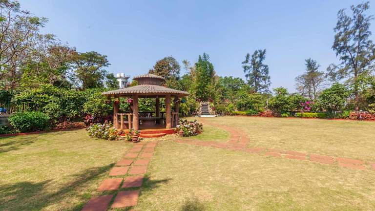 StayVista's Valencia Villa mit Gazebo und Indoor Games bietet eine gemütliche Atmosphäre mit einem Garten und einer Gemeinschaftslounge. Für die Gäste steht eine Terrasse zur Verfügung, auf der sie entspannen können.
