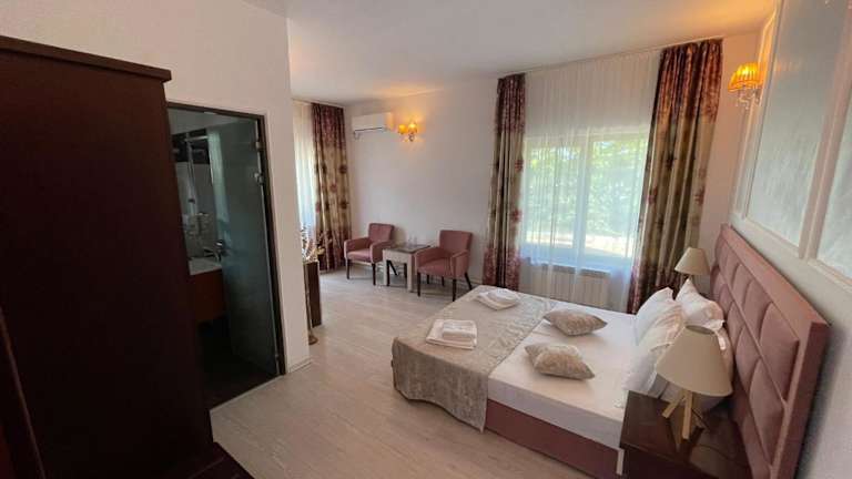 Das Steaua Apelor Family Resort befindet sich in Nufaru, umgeben von einer ruhigen, naturnahen Umgebung. Supermärkte sind in 1 km erreichbar, während ein Restaurant nach 12 km zu finden ist. Der Flughafen Tulcea liegt 28 km entfernt, und eine Bushaltestelle sowie ein Bahnhof sind nach 13 km erreichbar.