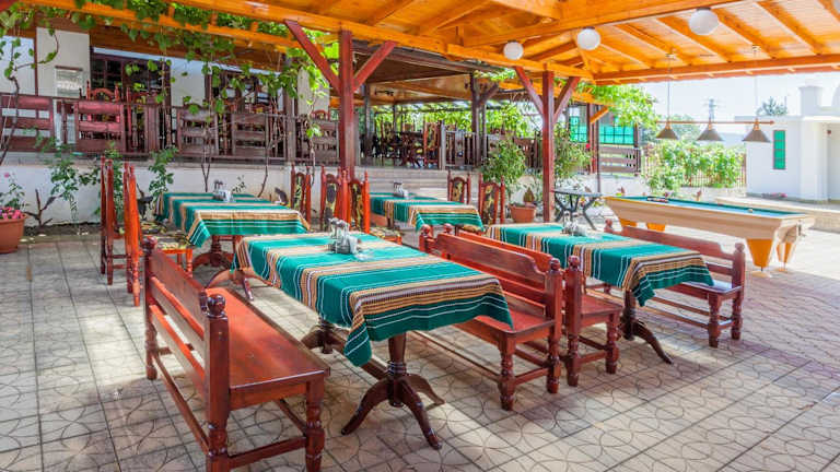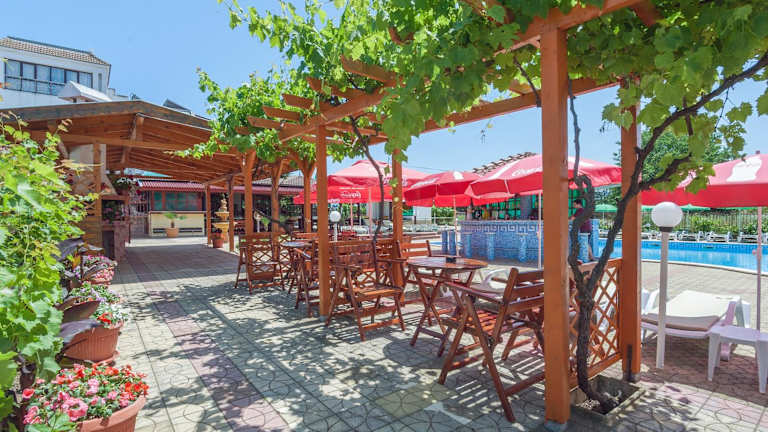 Im Buffetrestaurant werden bulgarische Gerichte serviert. In den Abendstunden können Gäste ein Unterhaltungsprogramm geniessen.