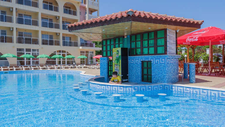 Das Stefanov 2 Hotel bietet einen Aussenpool mit Liegestühlen und Sonnenschirmen sowie zwei Poolbars. In einem gepflegten Garten findet sich ein Kinderspielplatz. Die 24-Stunden-Rezeption ermöglicht die Nutzung eines Safes gegen Aufpreis. WLAN kann in den öffentlichen Bereichen kostenfrei genutzt werden.
