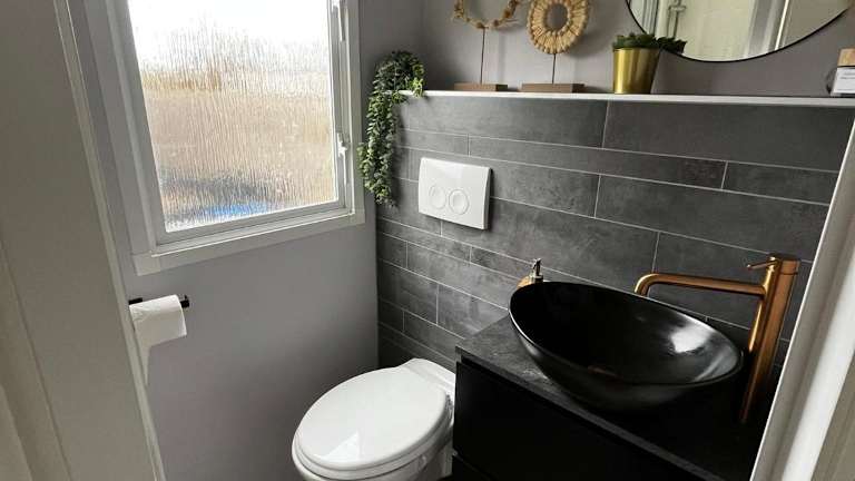 Das Chalet umfasst 2 Schlafzimmer, ein Wohnzimmer sowie eine gut ausgestattete Küche mit Kühlschrank und Geschirrspüler. Das Badezimmer ist mit einer Dusche ausgestattet. Die Terrasse bietet einen schönen Blick auf den Garten.