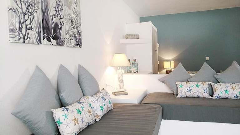 Die Zimmer im STELLA MARINA Hotel sind gemütlich und komfortabel eingerichtet. Jedes Zimmer verfügt über einen Balkon mit herrlichem Meerblick, auf dem Sie die frische Luft und den Ausblick auf das Meer genießen können. Die klimatisierten Zimmer sind mit einem Kühlschrank, einem Backofen, einem Wasserkocher und einem Kleiderschrank ausgestattet. Die Badezimmer verfügen über eine Dusche und einen Haartrockner. Kostenloses WLAN steht in allen Zimmern zur Verfügung und Bettwäsche sowie Handtücher werden gestellt.